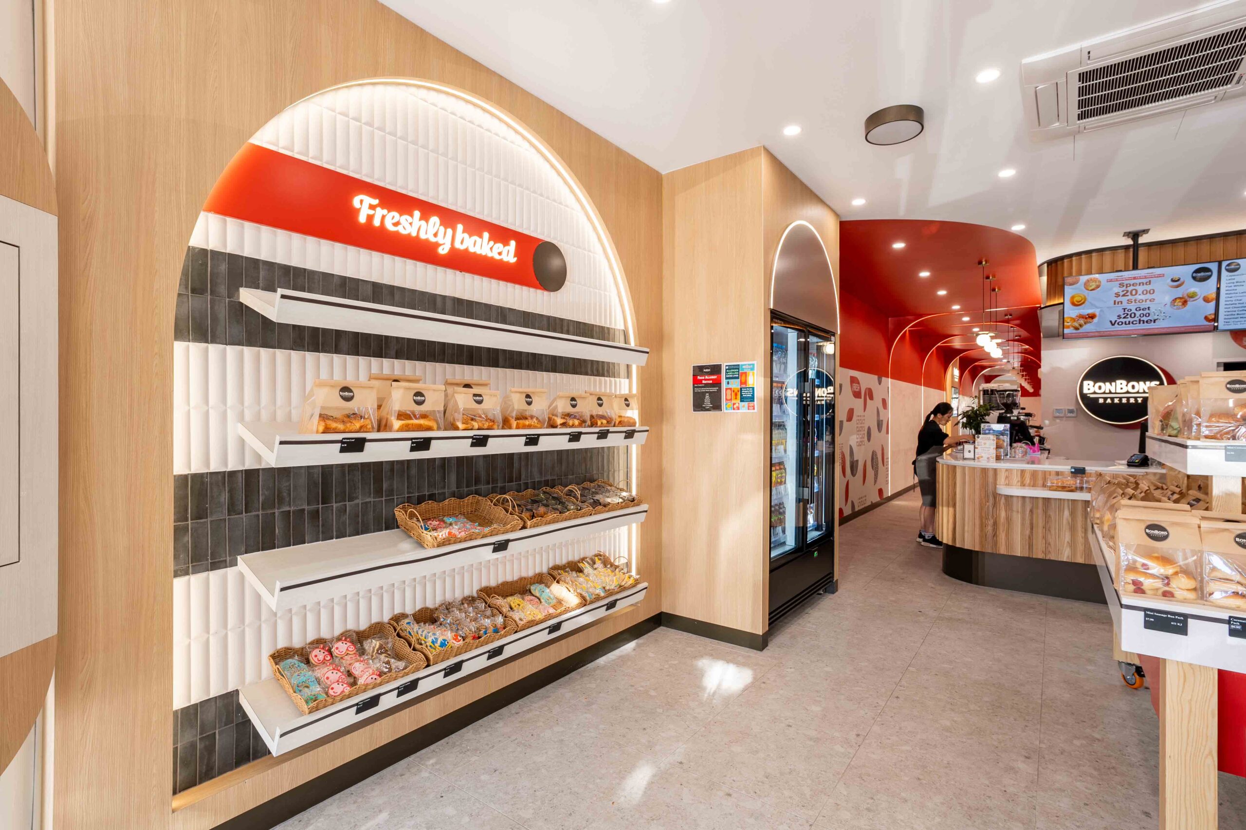 Bonbons Bakery is an Australian-based franchise brand with an international presence, specialising in “grab-and-go” offerings including Asian and Western-style freshly baked breads, hot and cold beverages, cakes, and confectionery. s2dio-X was appointed as Architect for the latest store at Clayton.
