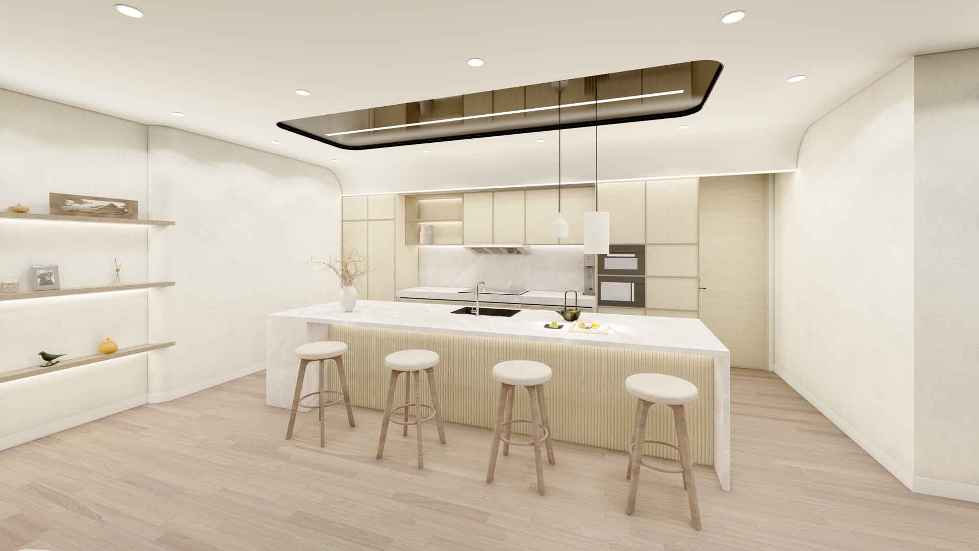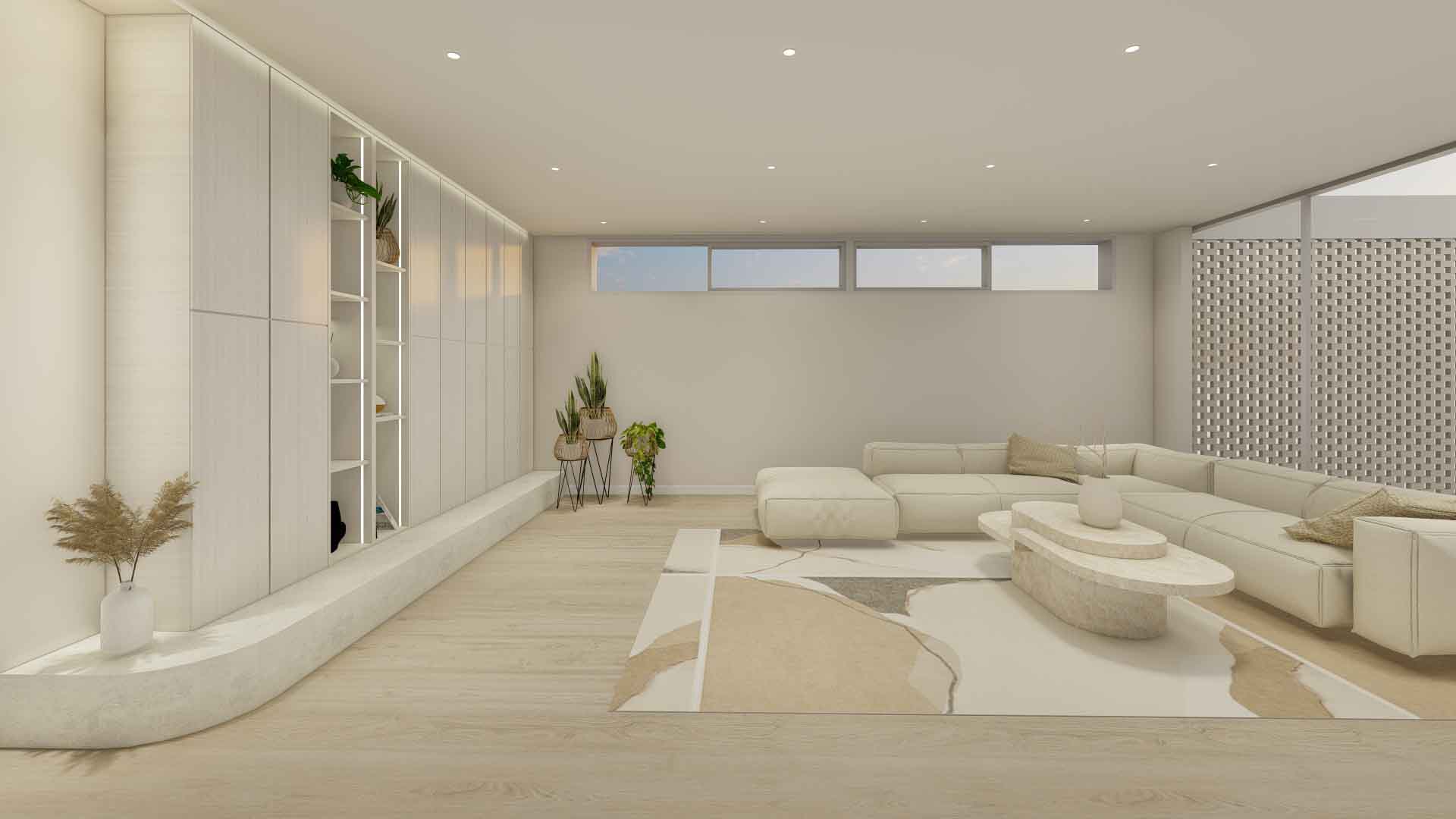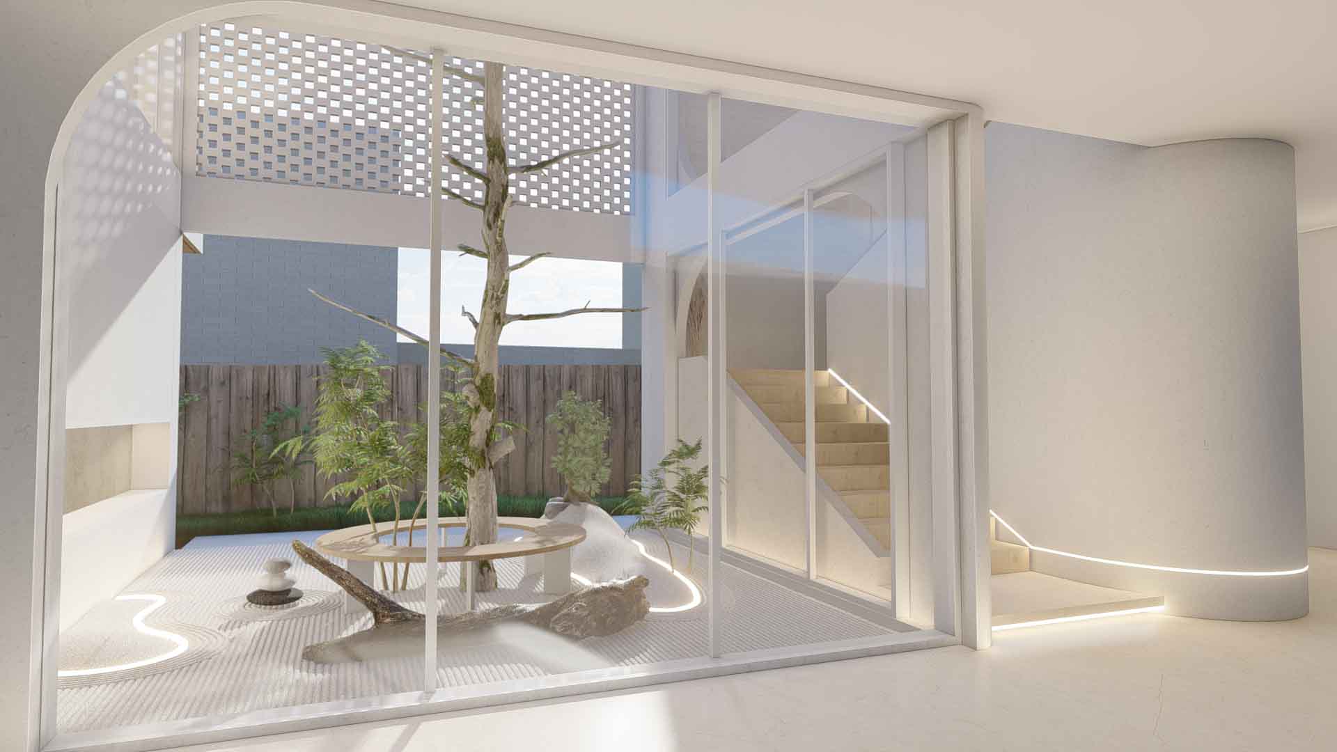 The design intent centres on calmness and retreat—an architecture of quiet moments, where light, proportion, and materiality cultivate a serene living environment.
