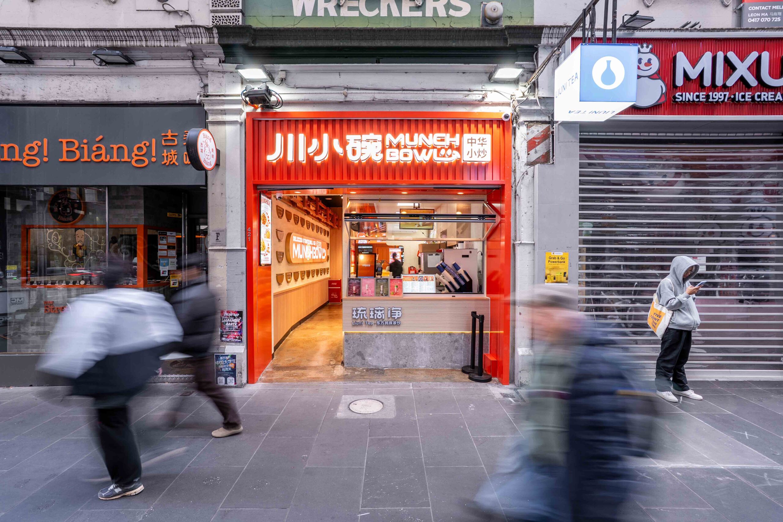 The tenancy is a street-front shop located within a highly competitive dining strip. In response to the surrounding restaurant context, the design adopts orange as the primary brand colour to strengthen visibility and create a clear point of difference.